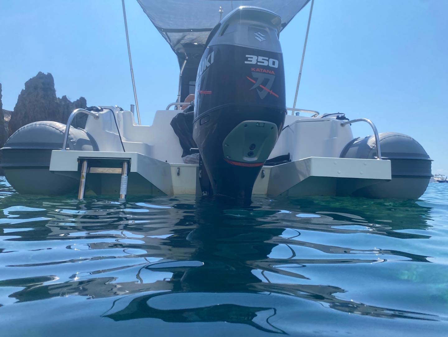 Nessuno dei 300 ha la stessa capacità di trasferire la 'coppia' in acqua, cioè nell' uso comune, che ha il Suzuki: sia a carico leggero che a pieno carico la doppia elica va un po' più forte e consuma molto meno, inoltre fa sì che, quando il battello salta sull'onda, la ricaduta avvenga sempre sull'asse di chiglia, esaltando al massimo la morbidezza di quella carena.