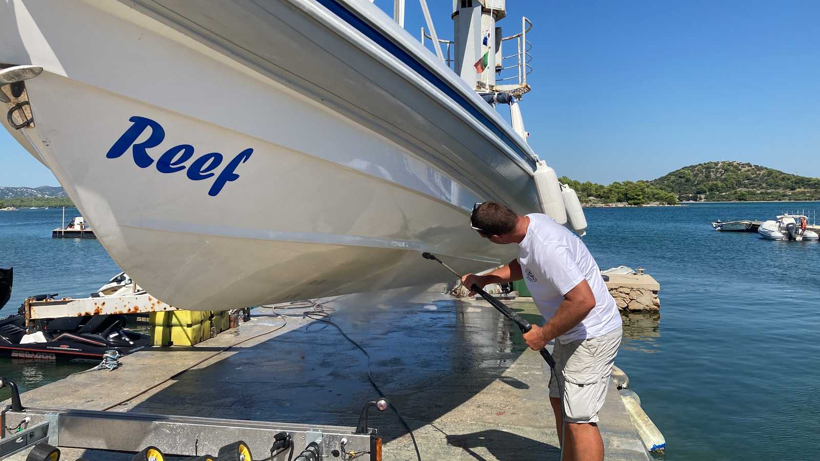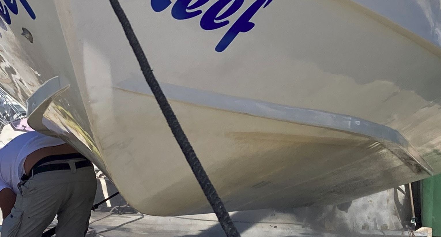 Ola vecchio! L' andamento dello spray non dipende solo dalla presenza o meno del pattino ma soprattutto dal volume di carena , e probabilmente quella ruota di prua che vedo molto avanzata e di raggio ridotto va a braccetto pure con volume poco affilato ma anzi un pò "panciuto"..