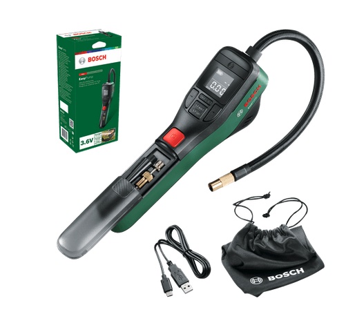 Ottima idea. Anch'io da 2 anni uso questa pompa universale/compressorino con la quale gonfio di tutto, auto, bici, roulotte, ecc e l'ho preso della bosh dato che uso le 2 stesse batterie che uso per l'avvitatore. Comodissimo.