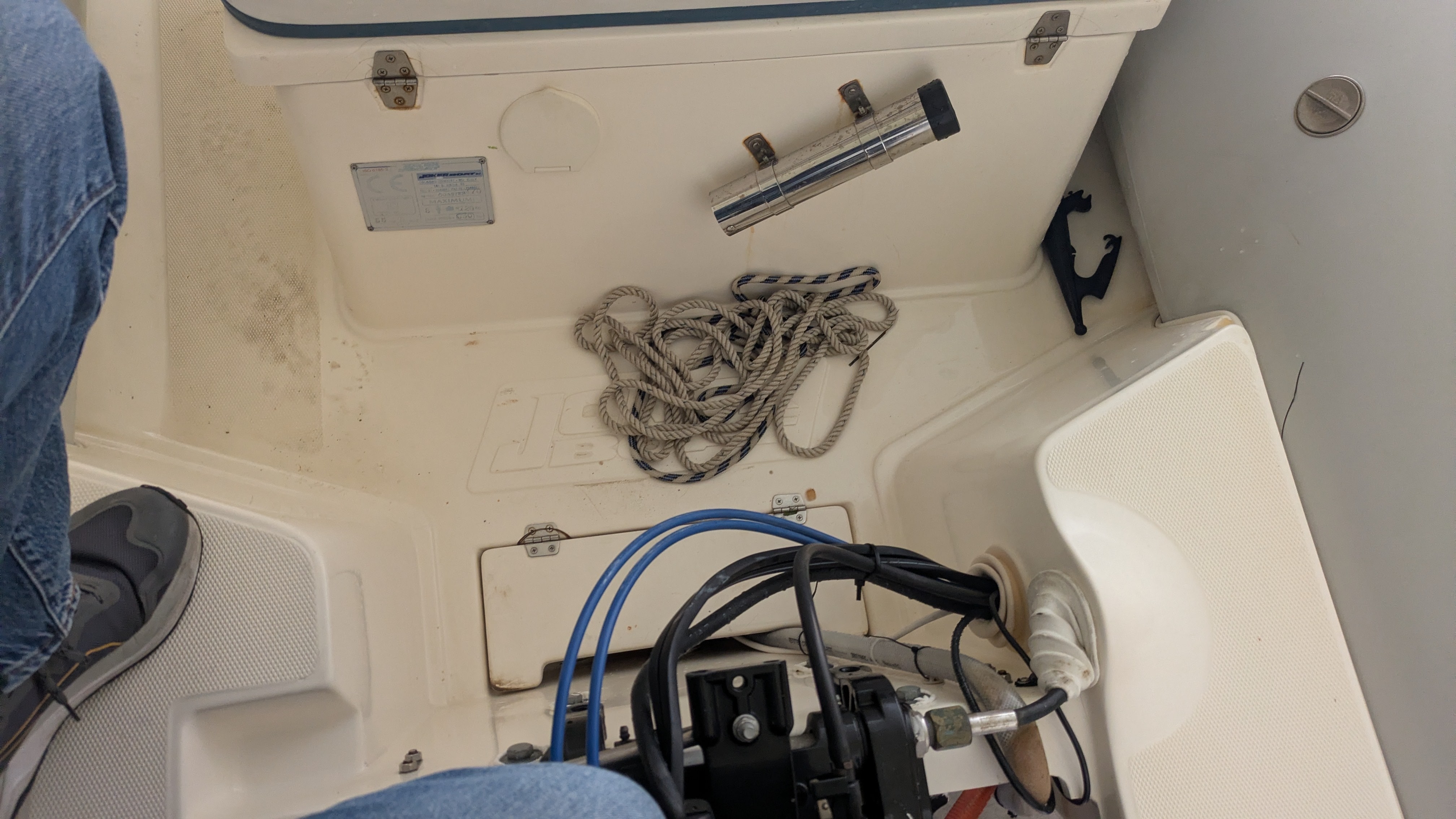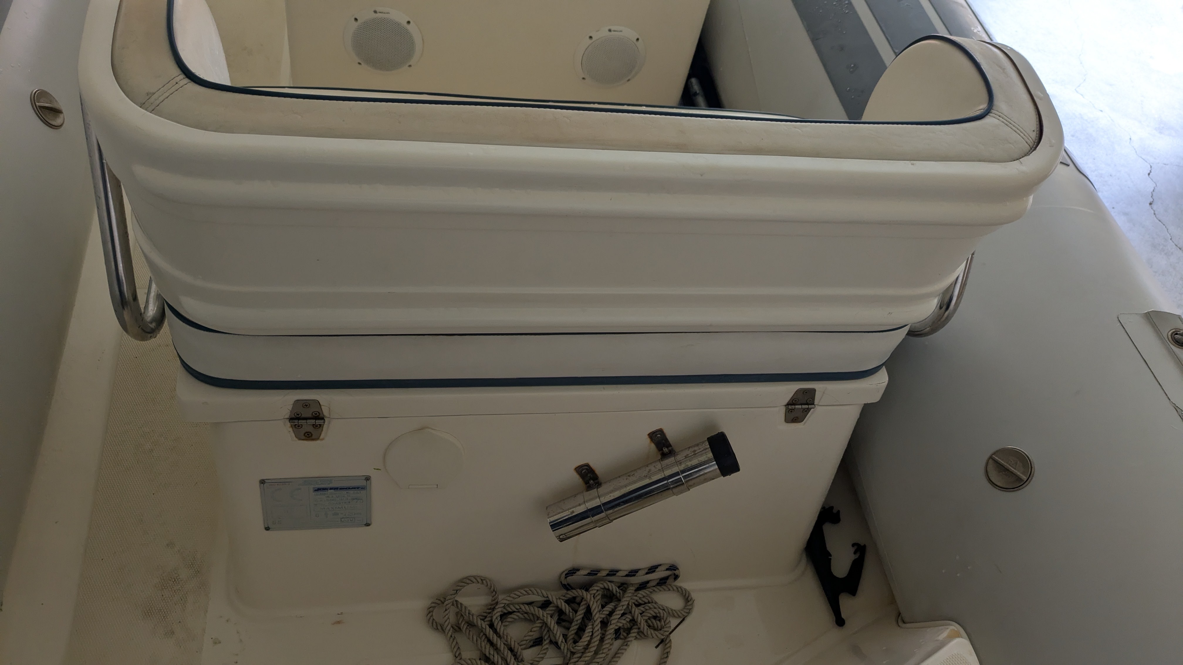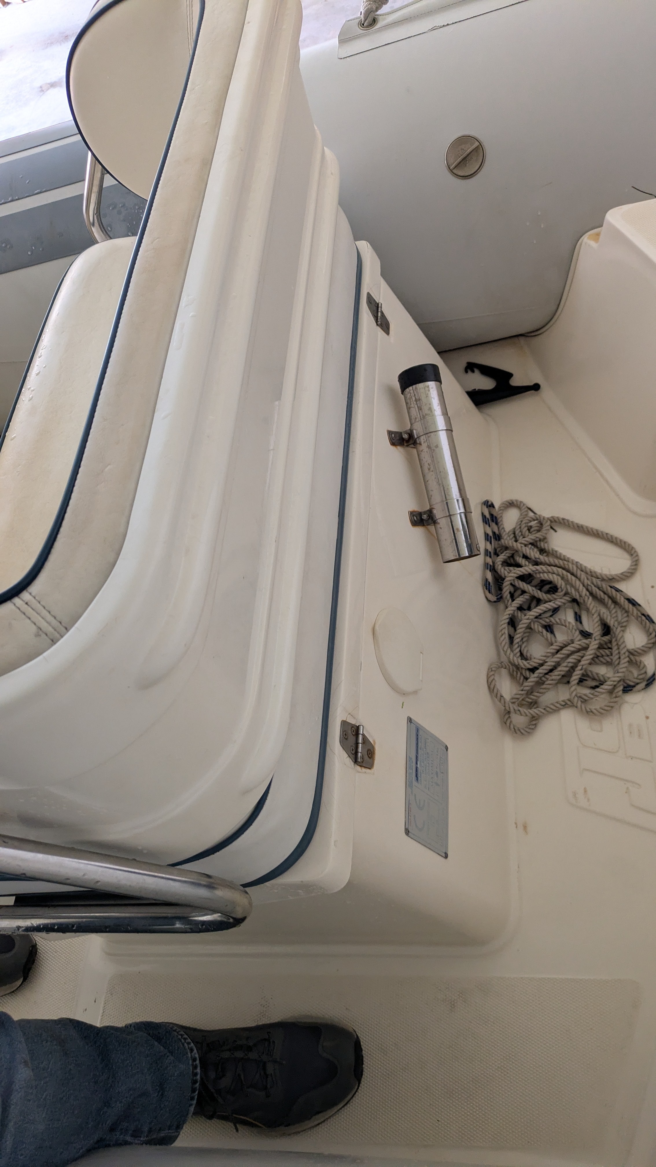Come accennato sopra, vorrei avere 2 o 3 portacanne "che tengono", e sto rimuginando dove e come fissarli. Premesso che praticherò traina a dentice e ricciòla (fra le altre cose), e quindi ci potrà essere parecchio sforzo sui portacanne, posto qui di seguito alcune foto.