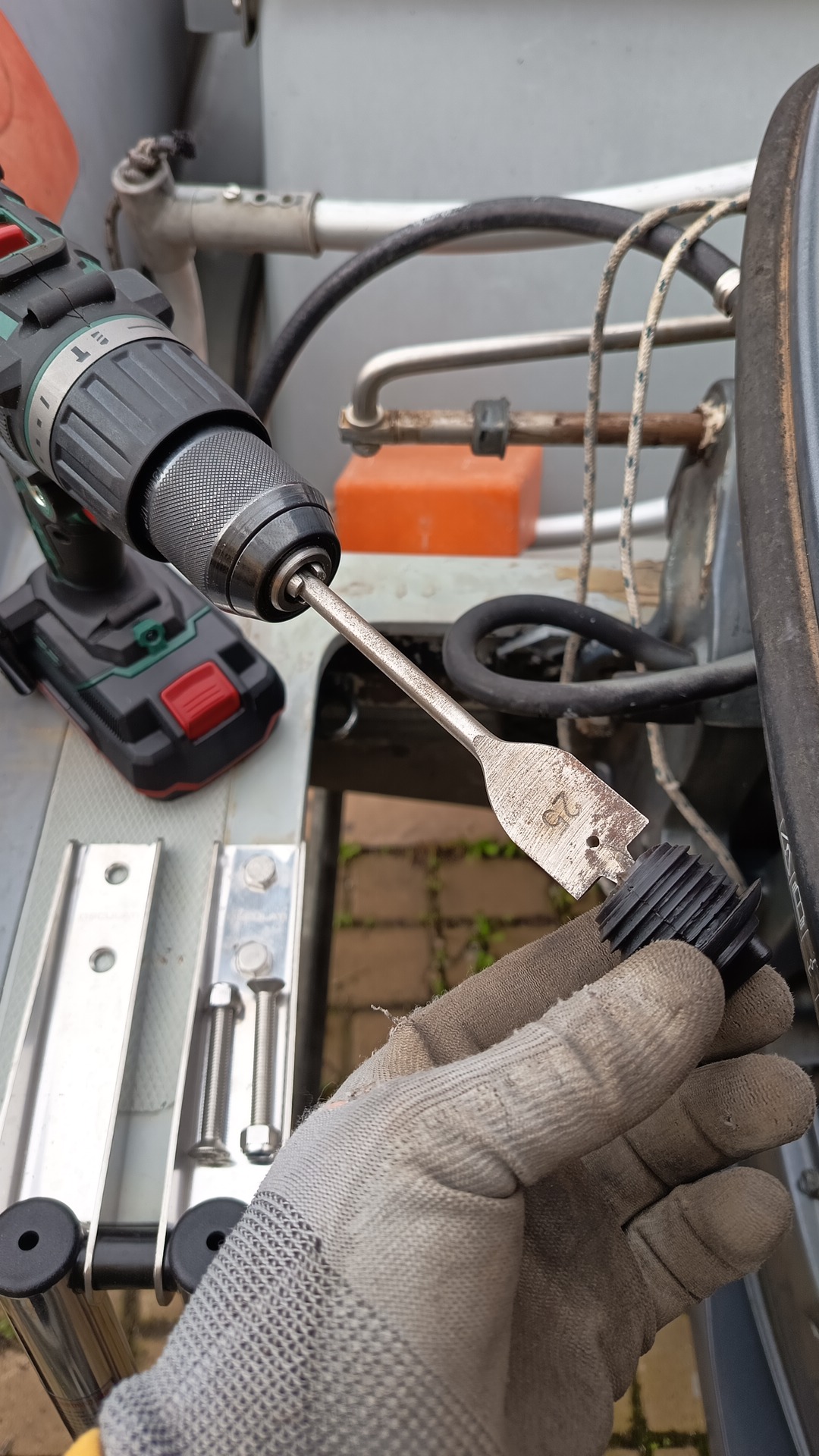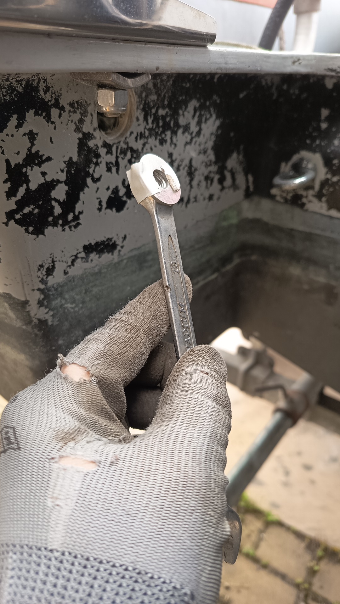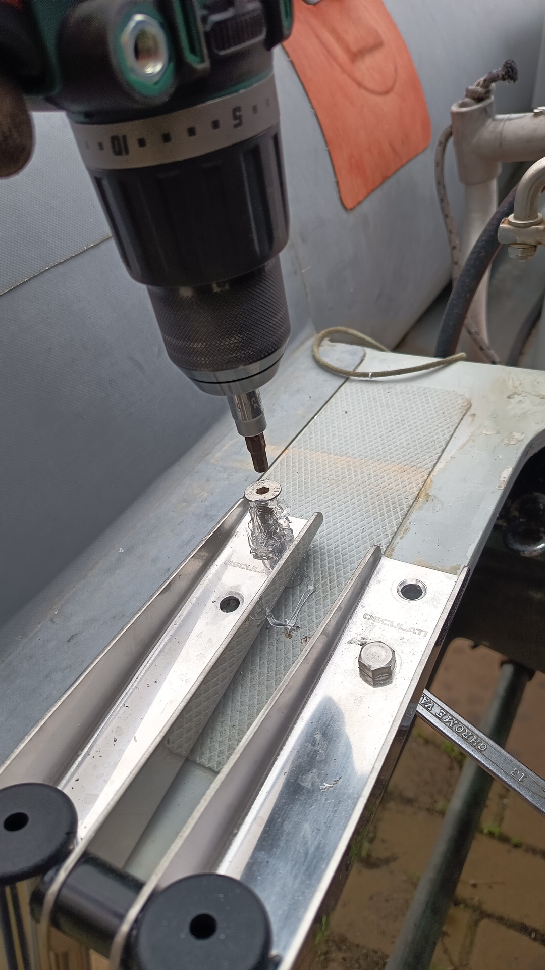 Quindi hai forato lo scatolotto (che nel tuo gommone é più piccolo del mio mi sembra) hai fatto passare poi dal buco dado/i e rondelle fissati con del nastro a una chiave inglese, e poi hai "tappato" il buco con quel coso nero di plastica, o sbaglio? Ho capito bene? Bucando, nel tuo gommone, hai trovato solo vetroresina o c'era anche del multistrato sotto/dentro?