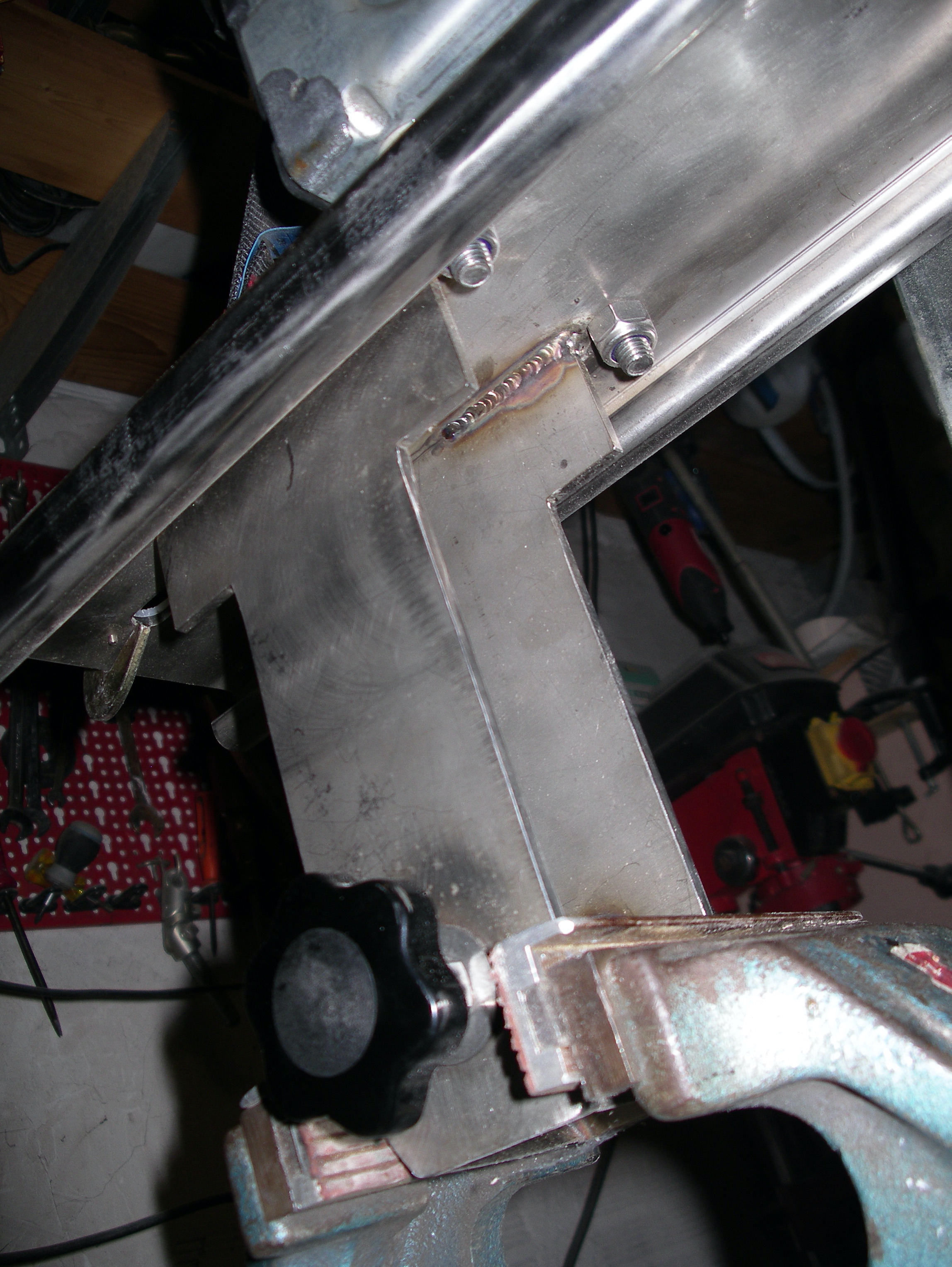 Montato il dispositivo di comando e avvitato i collegamenti elettrici, serve adesso fare un piano di appoggio per la batteria da avvitare li dove si vede nell'ultima foto. la batteria sarà mobile in quanto non intendo tenerla sul rimorchio...
