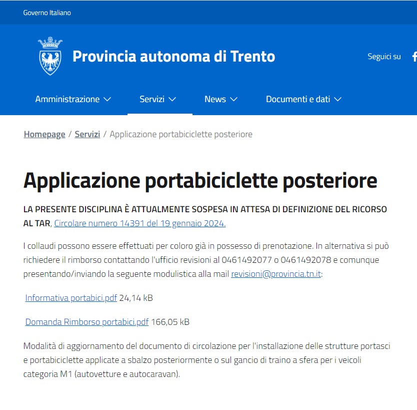 Se fai la strada che da Padova va ai colli euganei, meta di molti mtbiker locali , vedi un assortimento di porta-bici da gancio traino praticamente infinito. Stiamo tutti continuando ad utilizzarli grazie alla sospensione del TAR.