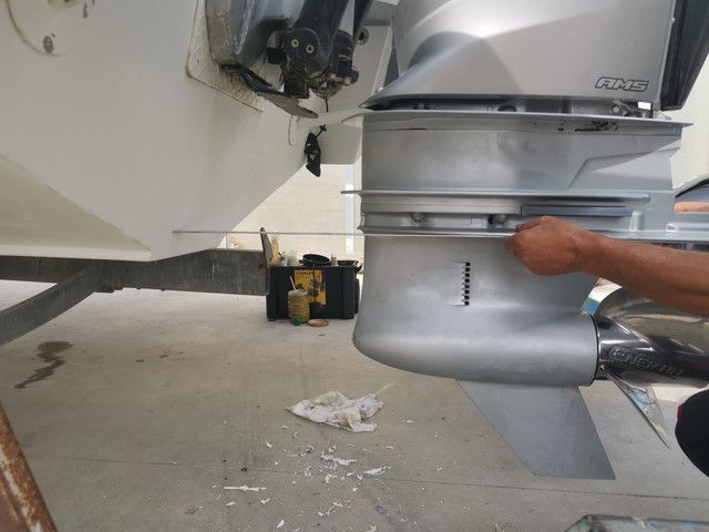 Buongiorno, rilevato altezza montaggio, come si pensava è alto. Siamo con la piastra anticavitazione tra i 3,5 e i 4 cm sopra la linea del pianetto di poppa. Ho 2 buchi a disposizione per abbassare.