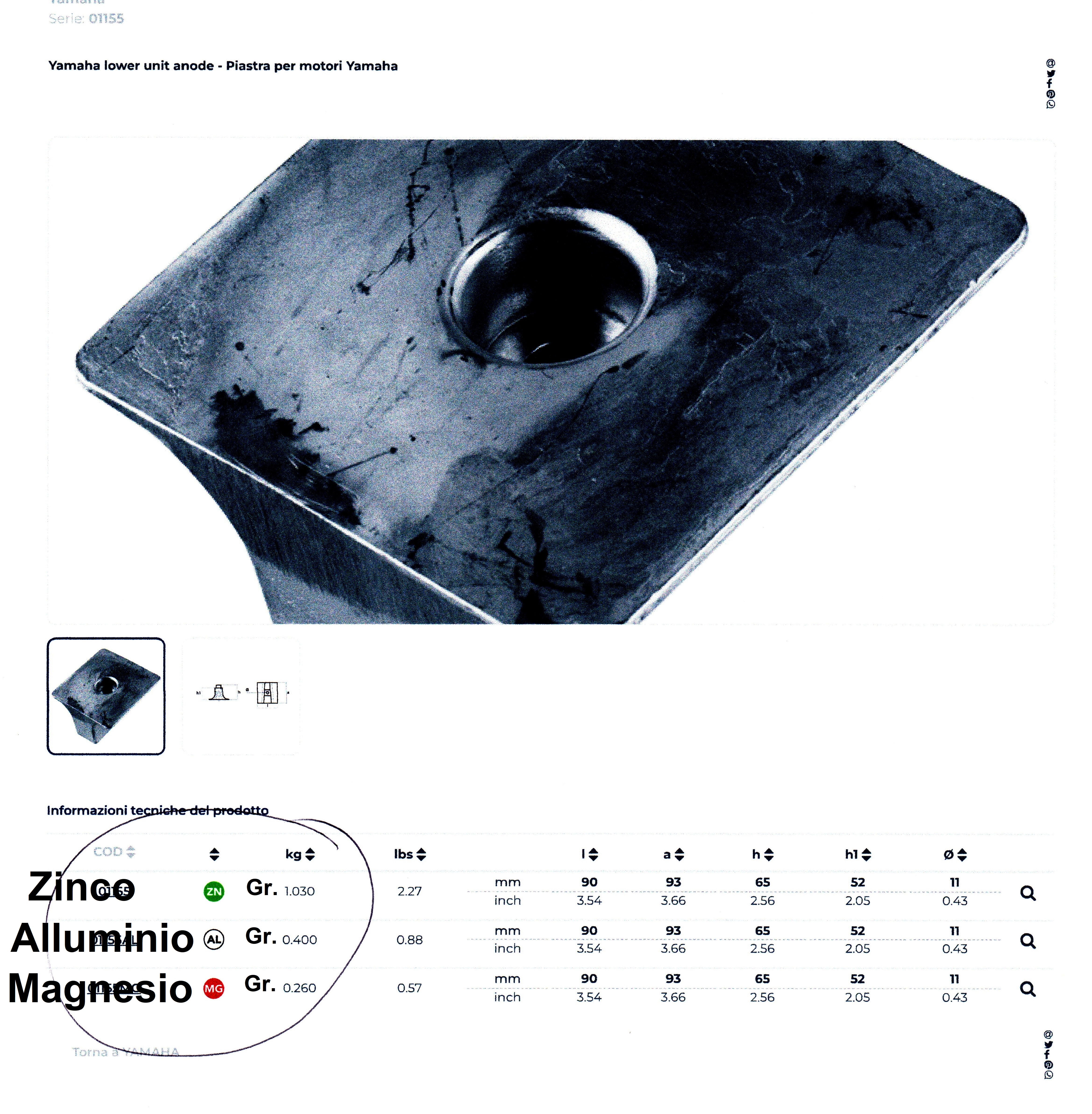 E quindi quali sono gli anodi corretti da montare sul motore ( secondo montaggio ) solitamente le case produttrici li indicano con i loro codici ( ma ci sono pure di altri produttori per il medesimo articolo ) ci sono vari tipi a secondo della salinità dell’acqua dolce/salata ) nel caso della salata c’è pure la scelta di scegliere su due tipologie Alluminio o Zinco.