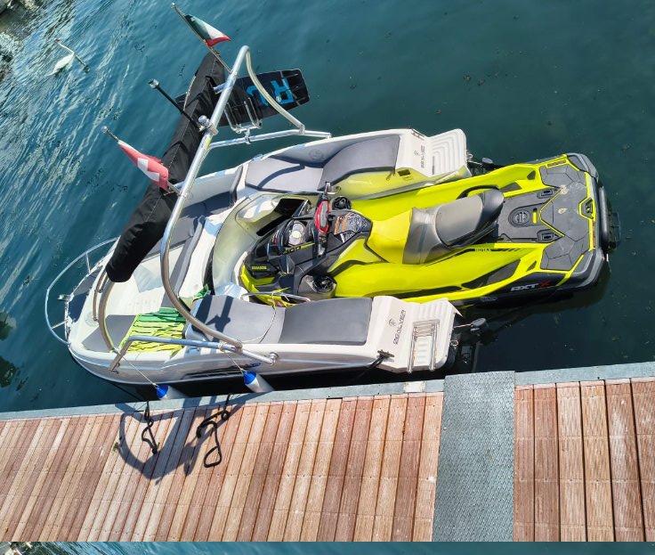 In pratica il propulsore è la moto d'acqua. Poi ti fermi in qualche baia e ti diverti con la moto jet.