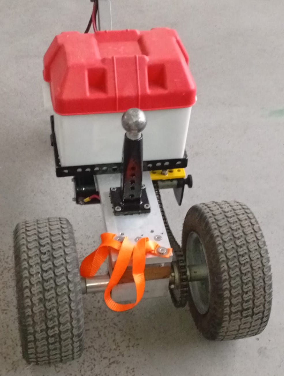 Nelle prime prove con il mio Ellebi, più pesante di cica 5 q.li di quello di Jebo, ho rilevato che, sotto trazione, nonostante il peso della batteria, tendeva a sollevare la parte anteriore. Anche i due ruotini pivottanti anteriori, nonostante l’utilizzo limitato apparivano sottodimensionati e in difficoltà (a causa del piccolo diametro) nel superare le irregolarità eventualmente presenti. Anche la soluzione di zavorrare la parte anteriore, adottata inzialmente, avrebbe incrementato le sollecitazioni a loro carico.