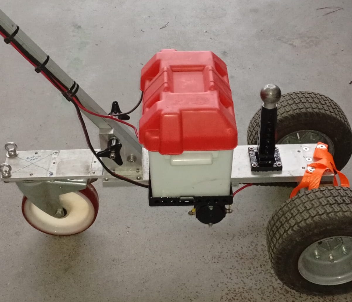 Poiché il mio carrello è rimessato al chiuso in un capannone regolarmente pavimentato ho pensato di far riesumare il mover di Jebo, rimasto inutilizzato. Grazie alla cortesia di Luca, il figlio di Mauro e, soprattutto di Mauri (che, con estrema cortesia, me lo ha addirittura recapitato a domicilio) ho potuto acquistare a prezzo di realizzo e da amico il mover.
