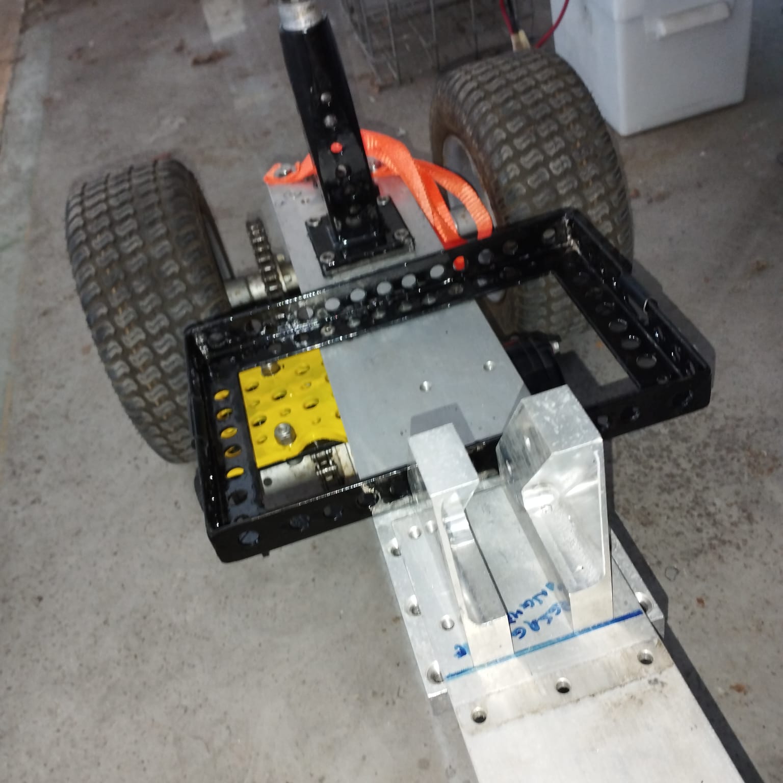 2) La piastra trasversale in lega che supportava i due ruotini pivottanti è stata fissata in senso longitudinale in modo da allungare il passo del mover e ulteriore spostamento in avanti del baricentro;