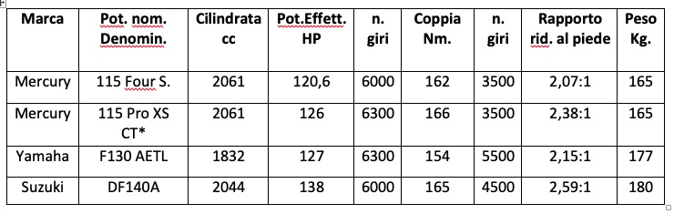 Detto questo i fuoribordo più recenti sono riusciti, a parità o quasi di potenza, a contenere molto i pesi. Ma conta anche la cilindrata perchè determina la curva di erogazione della coppia motrice. Se in una condotta "sportiva" va bene una coppia massima a relativamente alto numero di giri, di contro a velocità più ridotte (determinate non solo dall'indole del conducente ma spesso dalle condimeteomarine) conta una più elevata coppia a regimi più bassi.