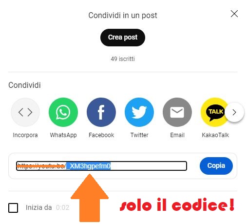 solamente codice video (copiato dalla piattaforma di riferimento)
